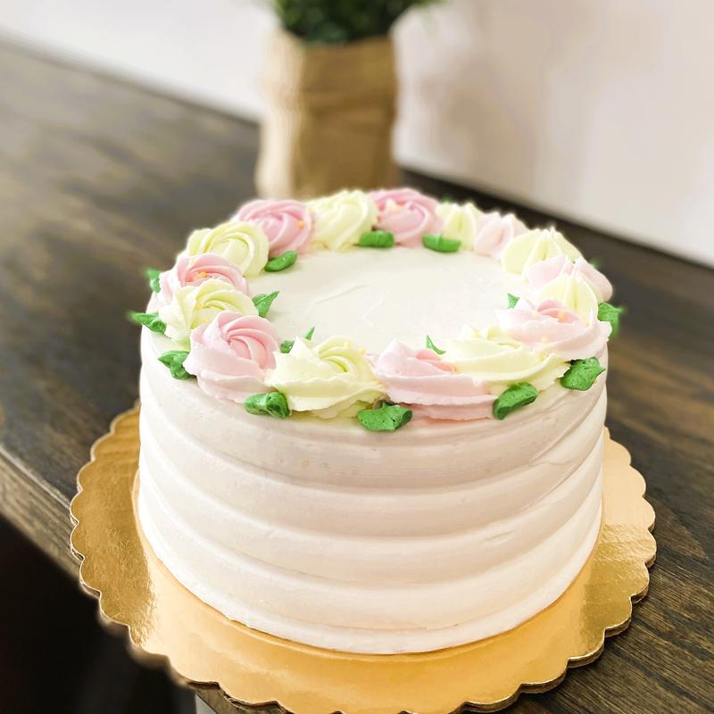 Cake includes basic frosting, one color tinted frosting and writing. Additional colors, hand piping, specialty decor will incur additional charges please see Cake Options for more details.